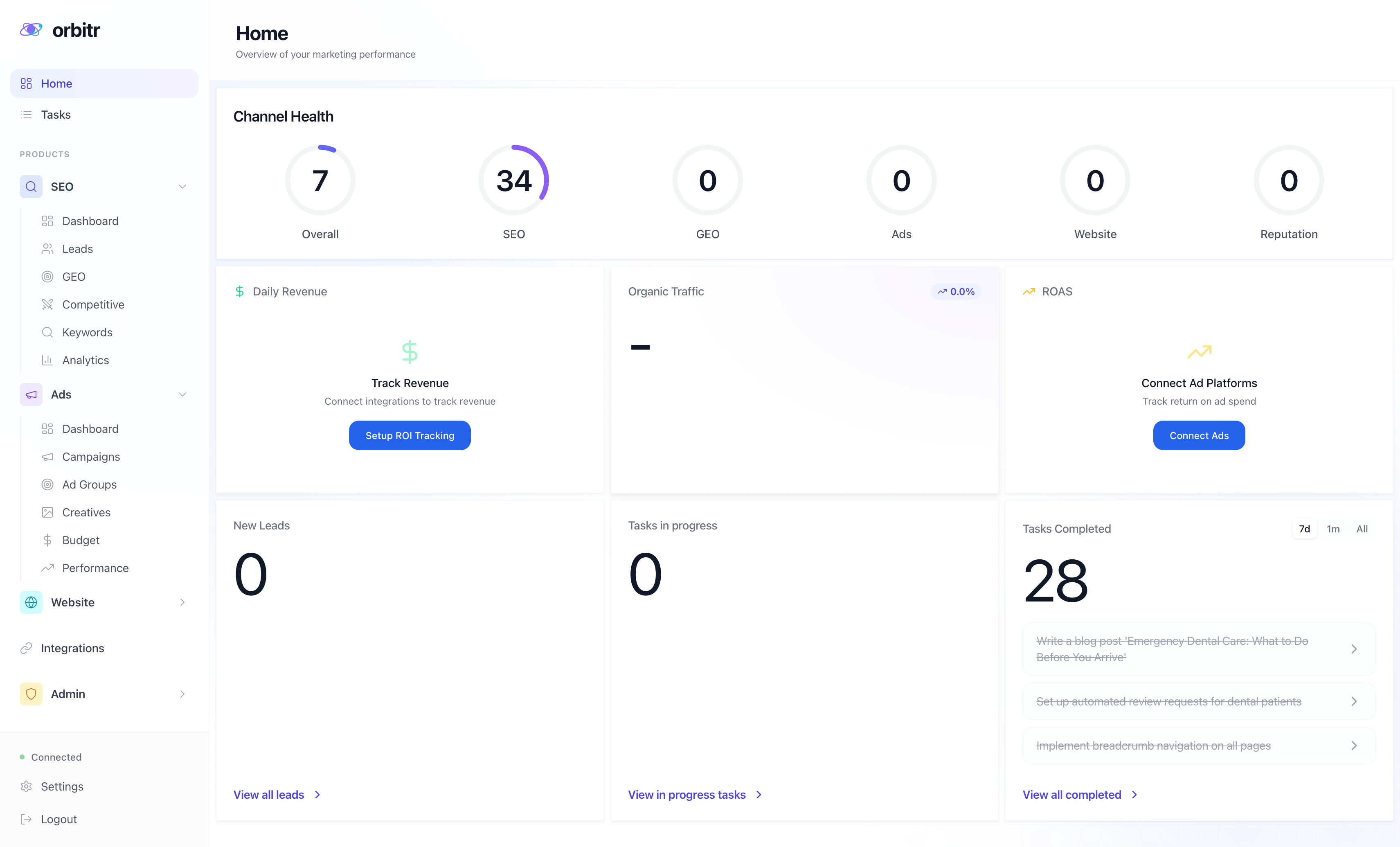 No marketing jargon needed. Just tell Orbitr what you want: more traffic, better ads, a new landing page.